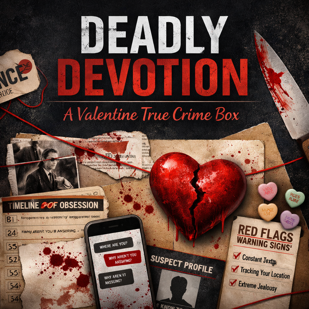 Deadly Devotion is a Valentine-themed true crime experience inspired by real cases where love crossed the line into obsession, control, and violence. This limited-edition box examines the warning signs people overlook — until it’s too late.